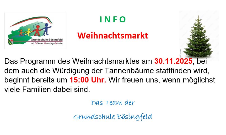 Das Programm des Weihnachtsmarktes am 30.11.2025, bei dem auch die Würdigung der Tannenbäume stattfinden wird, beginnt bereits um 15:00 Uhr. Wir freuen uns, wenn möglichst viele Familien dabei sind.