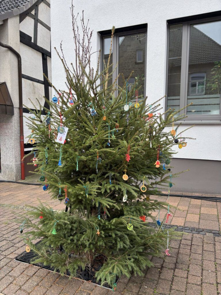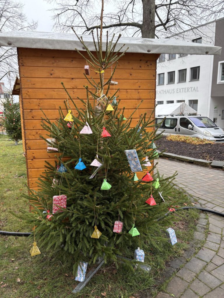 Ein herzliches Dankeschön gilt der Gemeinde Extertal, die uns die Weihnachtsbäume zur Verfügung gestellt und diese Aktion ermöglicht hat. Wir freuen uns sehr darüber, dass unsere Schülerinnen und Schüler so aktiv zum weihnachtlichen Ambiente in Bösingfeld beitragen dürfen – und laden alle herzlich ein, die geschmückten Bäume auf dem Weihnachtsmarkt zu entdecken.