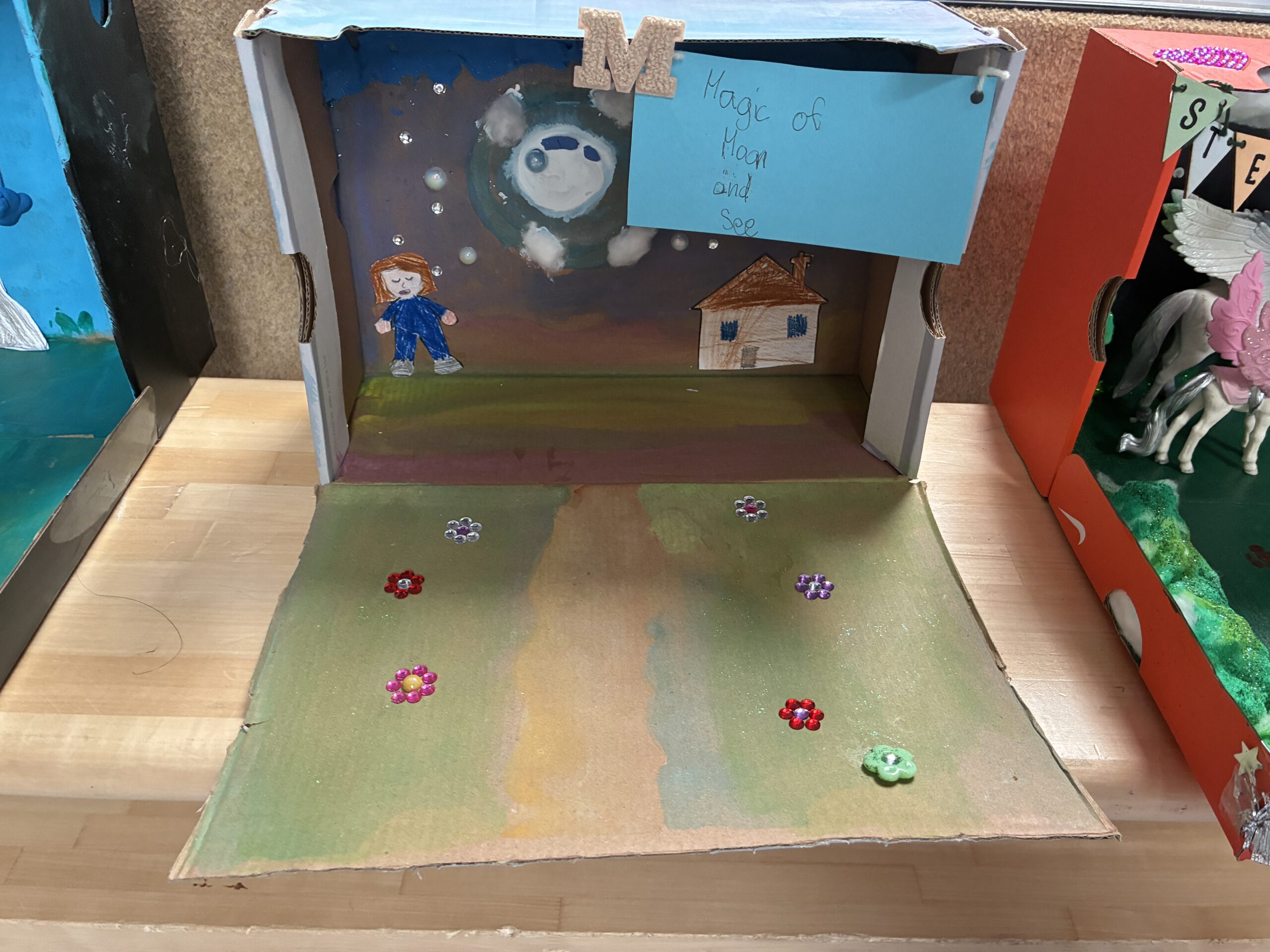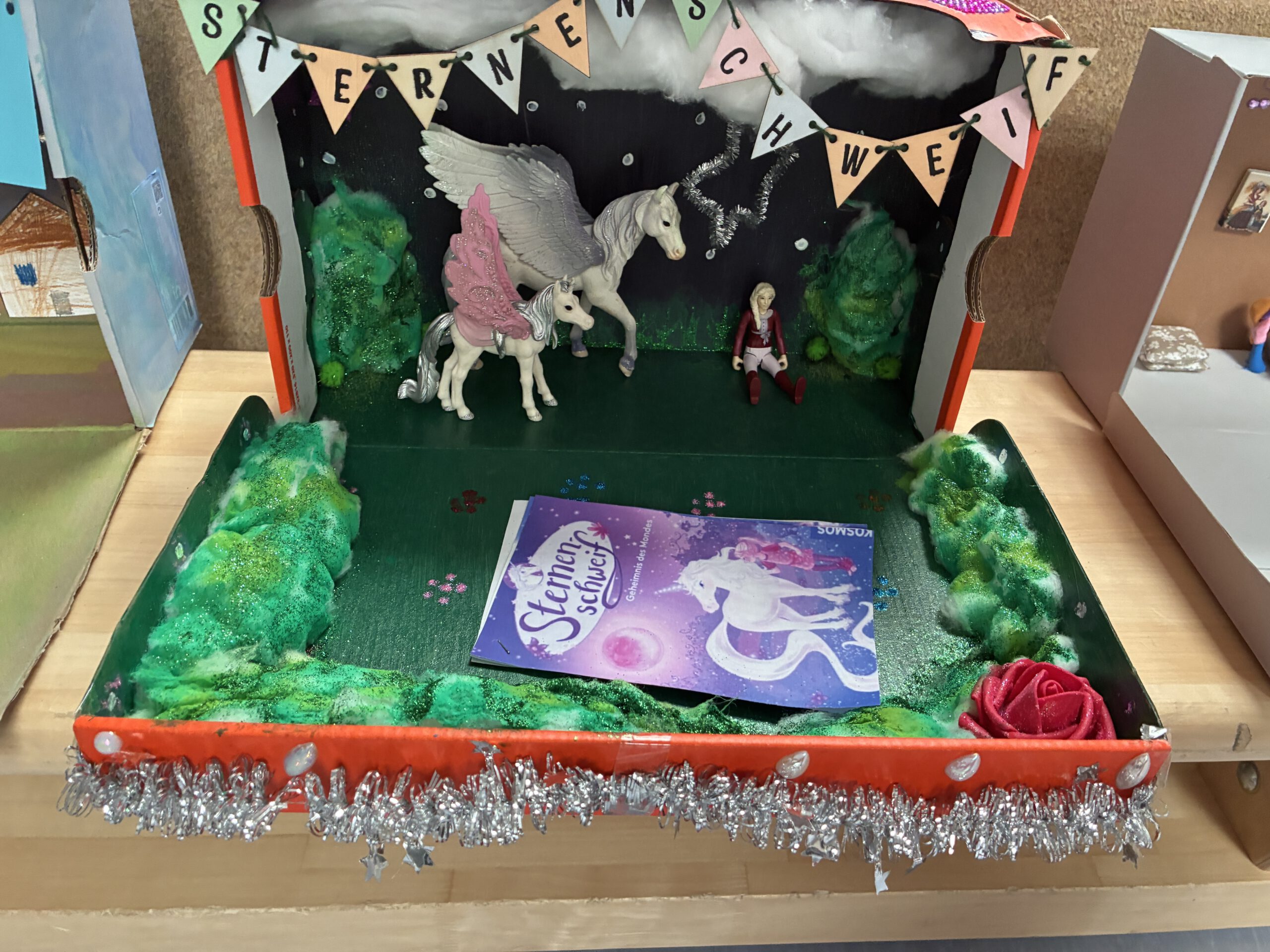 Die Viertklässler wählten individuelle Bücher und präsentierten ihre Leseeindrücke in originellen Lesekisten – mit Requisiten, Zitaten und Szenenideen.