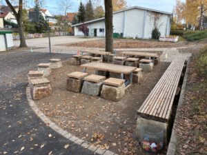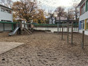 Im Jahr 2025 wurde unser Schulhof vollständig neu gestaltet: neu gepflastert, geteert und durch ein ansprechendes, kindgerechtes Design aufgewertet. Nun bietet er noch mehr Platz für Bewegung, Spiel und Begegnung. In den Pausen verbringen alle Kinder ihre Zeit grundsätzlich draußen – mit viel Raum zum Laufen, Klettern, Hüpfen und Austoben.