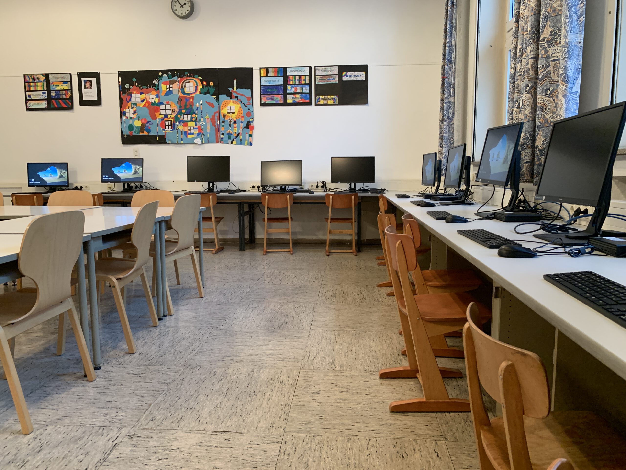 Alle Klassenräume sind digital ausgestattet – mit interaktiven Tafeln, WLAN-Zugang und freundlichen Lernbereichen, die den Kindern optimale Voraussetzungen zum Entdecken, Lernen und Forschen bieten.